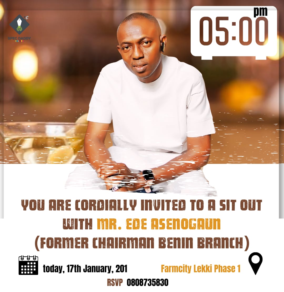 Ede Asenoguan, a man of good cheer cordially invites members of the Young Lawyers’ Forum (Lagos Branch) to a sit out.