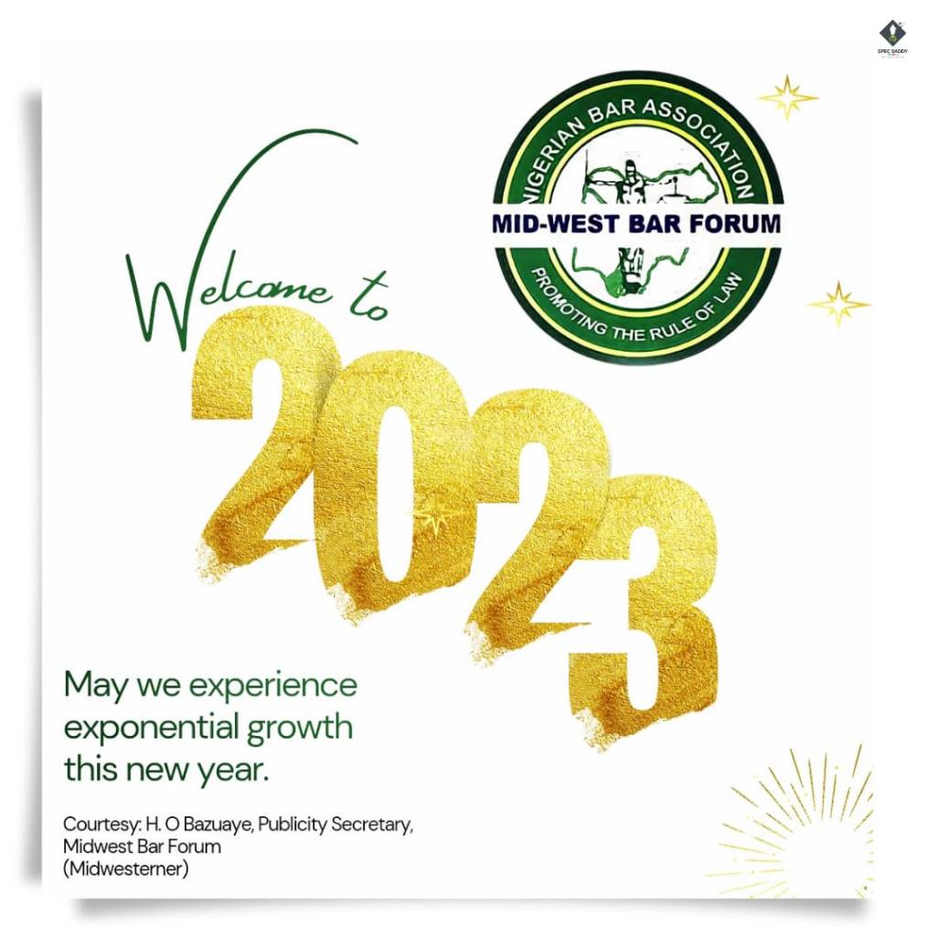 “The Midwest Bar Forum wishes all members of the Forum, the NBA and the general public a most rewarding 2023. Having experienced the vicissitudes of 2022, the Forum thanks the Lord Almighty for surviving the outgone year and hopes for a better 2023 in all its ramifications. We thank members for their steadfastness in 2022 despite its challenges and hopes that in the new year, we shall consolidate on the gains of 2022 and take the Forum to a more glorious height.